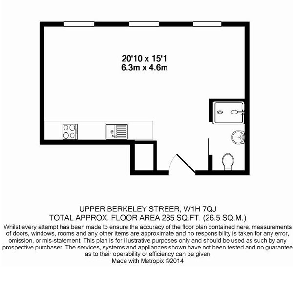 With its large, floor to ceiling windows, this first floor studio apartment is flooded with light and has a great location, tucked away in Upper Berkeley Street but only minutes from the hustle and bustle of Oxford Street. Here, you are in a fantastic central London location in one of the capital's most iconic shopping and entertainment districts. Marble Arch and Oxford Street tube stations are nearby and within minutes you can also find the calm and peace of Hyde Park. Interior designed throughout, the apartment has contemporary neutral decor and furnishings, complementing its many period features. At approximately 35 sq metres, this is a compact apartment but its design cleverly maximises the use of space. The smart, fully fitted kitchen has a washer-dryer, dishwasher and granite worktops. There's a flatscreen TV, double bed and sofa bed, as well as free WiFi, CCTV and entryphone. It also has its own balcony overlooking Upper Berkeley Street.